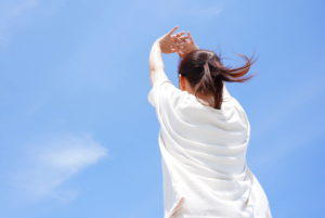 夕方、空を見上げながら